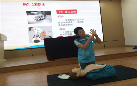 心肺復(fù)蘇術(shù)CPR環(huán)節(jié),劉老師通過“一看二喚三呼”、“左手在下、右手在上、十指相扣、指尖翹起”、“30+2”(30次胸外按壓+2次人工呼吸)、“仰頭抬頜”等關(guān)鍵詞教學(xué),以及現(xiàn)場實際操作演練,形象生動地指導(dǎo)大家如何進行心肺復(fù)蘇急救,進一步增強了大家自救互救的“救命”本領(lǐng)。社區(qū)青年黨員王文文連連稱贊:“這次活動讓我們受益匪淺,孩子們在玩中學(xué),增長了不少自救知識,為社區(qū)點贊!”