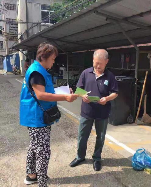 在巡查過程中,社區(qū)退休黨員志愿者們發(fā)現(xiàn)少數(shù)居民并未按要求投放垃圾,存在垃圾混裝、亂放的情況。于是,退休黨員志愿者們便采用走村入戶的方式,向居民們發(fā)放垃圾分類宣傳冊(cè),并講解垃圾如何分類、分類的影響等知識(shí),強(qiáng)化居民垃圾分類的意識(shí)。同時(shí),退休黨員志愿者還在垃圾收集點(diǎn)以及樓棟墻面的顯眼位置張貼亂扔垃圾處罰宣傳單,以罰款的形式嚴(yán)厲打擊垃圾不分類的現(xiàn)象。