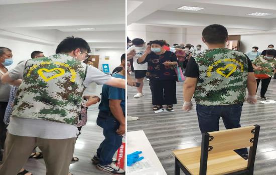 在核酸集中采樣點(diǎn),志愿服務(wù)隊(duì)隊(duì)員身穿退役軍人志愿者服務(wù)服裝,精神抖擻,在核酸采集工作組的統(tǒng)一安排下開展協(xié)助群眾登記資料、為老弱病殘群體提供幫助、協(xié)助現(xiàn)場(chǎng)防護(hù)和維護(hù)秩序等志愿活動(dòng)。在志愿者們的引導(dǎo)下,現(xiàn)場(chǎng)秩序井然有條,檢測(cè)工作快速高效。“您好,請(qǐng)問登記信息了嗎?”退役軍人志愿者們向群眾提供熱情耐心志愿服務(wù)。每當(dāng)有群眾前來檢測(cè)時(shí),志愿者們都會(huì)主動(dòng)上前詢問群眾的信息登記情況,為檢測(cè)群眾提供貼心服務(wù)。