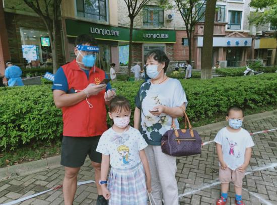 維持好現(xiàn)場的秩序,指引群眾有序間隔一米排隊;查看核驗群眾健康碼和身份證,做好檢測人員的信息登記;指導(dǎo)沒有佩戴好口罩的群眾正確佩戴口罩......在第三次全民核酸檢測的現(xiàn)場,他們穿梭于人群之中,傳遞物品、攙扶老人,忙碌的連短暫的同前來進(jìn)行核酸檢測的家人打個招呼都來不及。