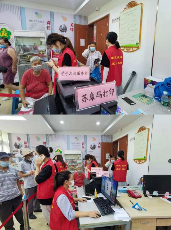 因疫情防控需要,社區(qū)每人都要有蘇康碼,曾參加五福家園社區(qū)“學(xué)子論壇”的學(xué)子陳倩和錢陽等學(xué)子們,主動聯(lián)系社區(qū)要成為巾幗志愿者,在社區(qū)大廳成立學(xué)子助力小組,協(xié)助社區(qū)工作人員幫助行動不便的殘疾老人申請并打印蘇康碼,平均每天要幫助40余名殘疾老人。他們或在給老人子女打電話,詢問相關(guān)信息;或在幫老人填寫信息,提交申請;或在打印機前忙碌,給老人打印。