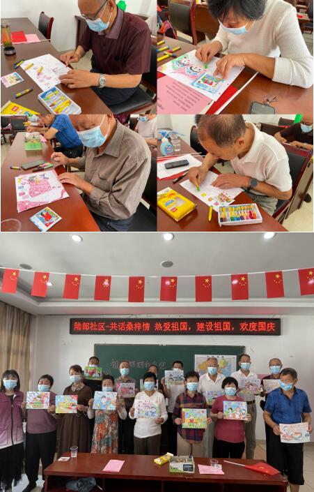 活動中,老黨員們在工作人員的指導下,拿起畫筆,把對祖國的熱愛之情,匯成一幅幅表現(xiàn)祖國美麗的圖畫。在他們的作品中,我們能深刻感受他們對于祖國的熱愛之情,大家感受童年的的美好記憶。“我已經很久都沒有提筆了,平時都是看孫兒畫,今天也童真了一次。”正在進行繪畫創(chuàng)作的老黨員一臉羞澀地說道??粗宵h員那認真作畫的樣子,此時他們就是一群“可愛孩子”。