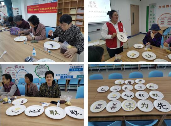 家風(fēng)家訓(xùn)是家庭教育的重要組成部分,家庭不只是人們身體的住處,更是人們心靈的歸宿,家風(fēng)好,就能家道興盛、和順美滿;家風(fēng)差,難免殃及子孫、貽害社會(huì)。2021年10月19日,淳化街道新華社區(qū)新時(shí)代文明實(shí)踐站、社區(qū)婦聯(lián)聯(lián)合南京致和社會(huì)工作服務(wù)中心,依托2021年度淳化街道政府購(gòu)買(mǎi)服務(wù)項(xiàng)目,組織開(kāi)展“巾幗話家事·五谷繪家風(fēng)”家風(fēng)家訓(xùn)宣講活動(dòng),以家事為切入點(diǎn),話家事、談家風(fēng),以五谷為材、以家風(fēng)為題,創(chuàng)作五谷畫(huà),推進(jìn)社區(qū)居民家風(fēng)建設(shè)。