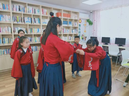 當天,孩子們來到教育服務室中,在志愿者們的幫助下穿上了漢服,學習傳統(tǒng)禮儀?,F(xiàn)場,志愿者講解了漢服背后蘊藏的豐富內(nèi)涵和精神意蘊,帶領他們體驗、了解漢文化。
