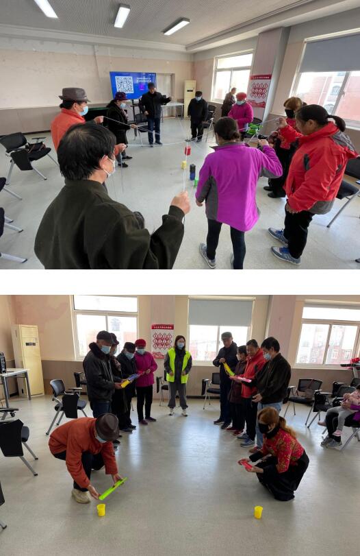 本次情感支持小組主要以趣味運(yùn)動(dòng)作為主要形式,共設(shè)有三個(gè)項(xiàng)目:珠行萬(wàn)里接力、一圈到底、合力建塔,通過(guò)集體游戲增近老人們的關(guān)系,促進(jìn)情感交流。在游戲過(guò)程中,老人們不僅可以感受到成功的喜悅,還能收獲友誼,擴(kuò)大社會(huì)交往網(wǎng)絡(luò),活動(dòng)現(xiàn)場(chǎng)氣氛熱烈。