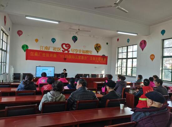 11月25日是聯(lián)合國(guó)確立的“國(guó)際消除針對(duì)婦女暴力日”,又被稱為“國(guó)際反家暴日”,當(dāng)天,棲霞區(qū)棲霞街道江南廠社區(qū)婦聯(lián)組織開展法制主題講座,以家庭平安推進(jìn)文明社區(qū)建設(shè)。