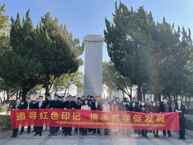 12月4日,江寧區(qū)秣陵街道牛首社區(qū)黨委和共建單位紫金農(nóng)商銀行江寧開發(fā)區(qū)支行攜手,共同開展“追尋紅色印記 攜手共學(xué)促發(fā)展”紅色教育暨黨建共建主題黨日活動(dòng),前往龍都烈士陵園參觀學(xué)習(xí)。