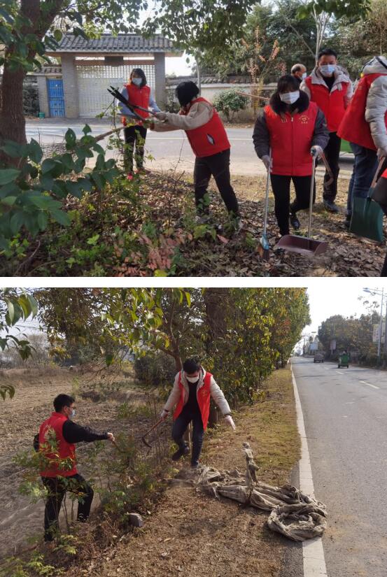 大家分成數(shù)個小組,分頭行動。一組在村莊廣場、綠化帶中對雜草樹木進(jìn)行修剪,將干枯的以及伸出道路兩旁影響通行的枝條都處理掉,提升美觀度,消除安全隱患。