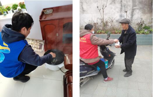 秉持著疫情期間不發(fā)生大規(guī)模聚集的防控措施,志愿者們決定將餃子包好后上門送給困難老人。當(dāng)天,志愿者們準(zhǔn)備好了蔬菜、肉、調(diào)料、餅皮等,將餡料剁碎攪拌,手指靈巧翻飛,一個個飽滿可愛的餃子就誕生了。志愿者們煮好開水,將餃子下鍋,等到餃子熟透漂浮起來,就將餃子打包到飯盒里,每個人分配好送去哪里,就馬不停蹄地進村了。送到困難老人手上時,餃子還冒著熱氣,蘊含著滿滿的關(guān)心與呵護。志愿者向老人噓寒問暖,詢問他們的身體情況和生活狀況,告訴他們,如果有什么困難一定要及時反映。老人們吃著熱騰騰的餃子,心里也暖呼呼的。