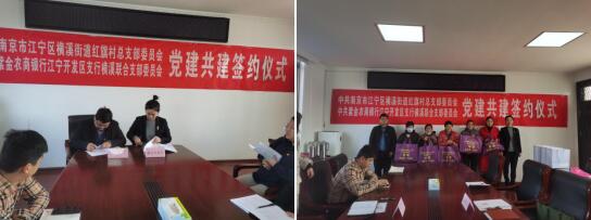 12月17日上午,江寧區(qū)橫溪街道紅旗村黨總支與紫金農(nóng)商銀行江寧開(kāi)發(fā)區(qū)支行橫溪聯(lián)合支部委員會(huì)開(kāi)展黨建共建簽約儀式。