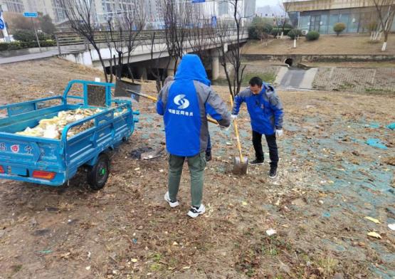 社區(qū)工作人員通過文字和照片確認現(xiàn)場情況,立即聯(lián)系河道綠化管養(yǎng)人員,但對方當(dāng)前事務(wù)繁忙,處理流程較長。因此,為了盡快恢復(fù)環(huán)境美觀,社區(qū)決定親自前去清除垃圾。