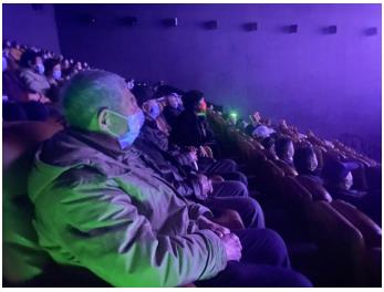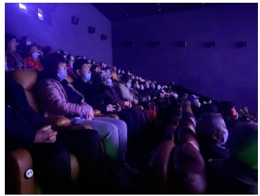 為了貼合疫情防控需求,影院全面消毒,并對(duì)前來(lái)觀影的黨員同志做好量體溫,查驗(yàn)蘇康碼等“規(guī)定動(dòng)作”,確保觀影安全?!堕L(zhǎng)津湖之水門(mén)橋》圍繞著“水門(mén)橋”的特定空間,講述了第七穿插連戰(zhàn)士“三炸水門(mén)橋”的故事,劇情緊湊,引人入勝。黨員同志們聚精會(huì)神地觀看著電影,當(dāng)看到戰(zhàn)爭(zhēng)結(jié)束之后,部隊(duì)清點(diǎn)人數(shù)的時(shí)候,伍萬(wàn)里報(bào)道:七連應(yīng)到157人,實(shí)到1人時(shí),很多黨員同志們都眼含熱淚。觀影過(guò)程中,黨員同志時(shí)不時(shí)地拿手機(jī)拍攝下影片的精彩片段,還有些同志用紙筆記錄下影片中的歷史知識(shí)。