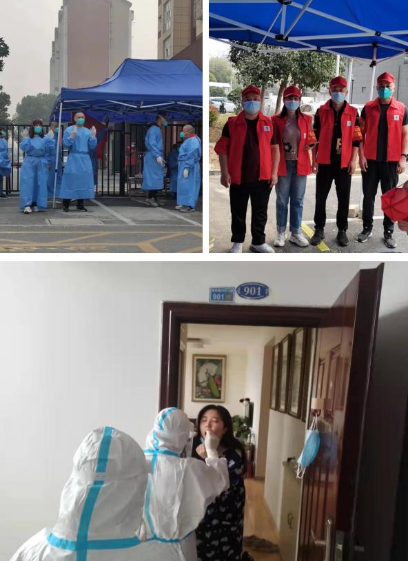 疫情當(dāng)前,人心惶惶,全民核酸檢測刻不容緩,但醫(yī)護人員人手不足,居住在管控小區(qū)里面的居民立刻報名成為了志愿者,做一些力所能及的事情。他們分別是東山街道城管、淳化街道西城村網(wǎng)格員、江寧區(qū)人才集團以及江寧公交集團的黨員志愿者們。他們有些人穿上防護服,戴好手套和口罩,穿梭在核酸采樣點,維護秩序,答疑解惑;還有一些挨家挨戶上門,為在家隔離的村民提供采樣檢測服務(wù),并為他們分發(fā)物資,安撫他們的情緒,鼓勵大家積極面對、樂觀向上。藍(lán)色的帳篷、白色的防護服、紅色的志愿者馬甲,和陽光下鮮艷奪目的黨旗……這些顏色是疫情當(dāng)前的“定心丸”,也是中國精神的閃耀。