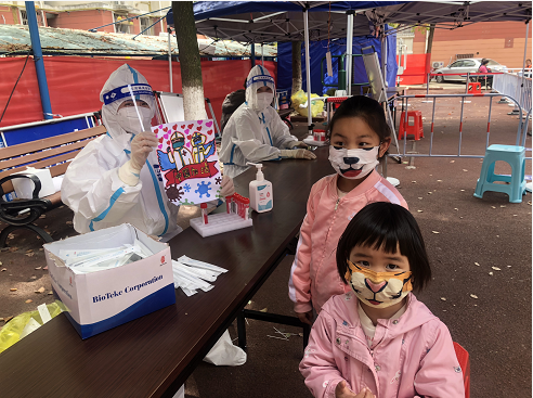 近日,南京市江寧區(qū)秣陵街道牛首社區(qū)工作人員在太平南苑全員核酸檢測(cè)點(diǎn)位進(jìn)行核酸檢測(cè)時(shí)收到轄區(qū)小朋友收的宣傳畫,畫上一名“全副武裝”的大白,正在為面前的一位居民做核酸檢測(cè),畫里記錄的場(chǎng)景這些天里重復(fù)在各個(gè)核酸檢測(cè)點(diǎn)位上演著。