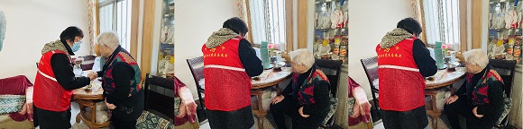 防控疫情不防“愛”,“送飯上門”暖人心。俞學(xué)英是一位獨居高齡殘疾老人,家住鳳翔小區(qū),無兒無女。疫情期間防疫形式嚴峻的情況下,俞奶奶身邊又無人照顧,因此每日中午社區(qū)志愿者都會為她送飯到家中。當她收到這份“暖心菜”,忍不住拉著志愿者的手連聲道謝。同時,社區(qū)志愿者還詳細詢問了她目前的身體狀況,并叮囑她做好疫情防護措施,盡量不要出門,有什么需要隨時都可以和社區(qū)聯(lián)系。“你們天天防控已經(jīng)夠辛苦了,病毒無情人有情,我真是感受到了黨和政府的關(guān)心和關(guān)愛,太暖心了。”俞奶奶一個勁的向社區(qū)表達感謝。