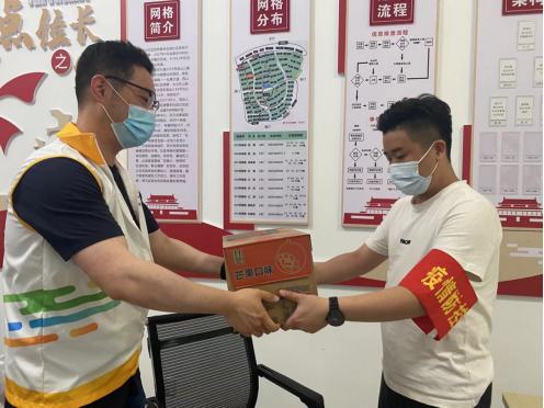 下午14:00,社區(qū)團(tuán)總支組織轄區(qū)團(tuán)員及青年志愿者赴社區(qū)防疫一線(xiàn)慰問(wèn)疫情防控工作人員。團(tuán)員及志愿者們帶著一箱箱礦泉水等物資,為他們送去夏日的一份清涼,并主動(dòng)幫助他們從事力所能及的疫情防控工作內(nèi)容,幫他們分擔(dān)、減負(fù)。“太感謝這些志愿者們了,雖然天氣炎熱,但是疫情防控絕對(duì)不能松懈。”一線(xiàn)人員說(shuō)道。