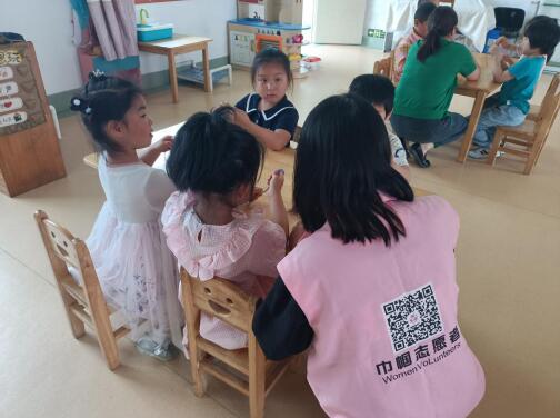 端午將近,掛蛋袋是一種流行于江南地區(qū)的民俗傳統(tǒng),有消災(zāi)解難、逢兇化吉、護(hù)佑孩子健康平安的寓意。巾幗志愿者為孩子們準(zhǔn)備了蛋袋編織的手工材料,教授編織蛋袋的方法。志愿者仔細(xì)的講解編織步驟,孩子們認(rèn)真聆聽學(xué)習(xí),五彩的編織繩經(jīng)過小朋友們的不斷嘗試后,最終成為了一個(gè)擁有美好寓意的蛋袋。