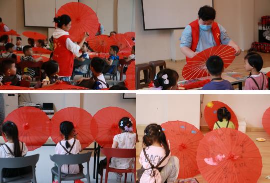 活動一開始,社區(qū)新時代文明實踐志愿者們便向在座的孩子們發(fā)放今天要用到的紅色紙傘以及畫筆,告訴大家需要繪畫的內容。志愿者們先做示范,在紙傘上畫出海洋動物以及陸地動物的大致輪廓,讓有繪畫基礎的孩子們親自動手,并在一旁幫助指導。章魚、企鵝、熊貓、海草……在小朋友們的奇思妙想中,一個個栩栩如生的動物圖案躍然紙上,孩子們拿著顏料為自己的作品涂色,還相互之間交流討論,現場熱鬧非凡。完成后,志愿者們在紙傘上貼上五角星,引導孩子們樹立愛黨愛國的意識,努力成為一個新時代好少年。