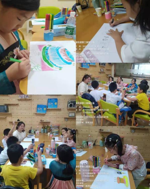 為豐富孩子們的暑假生活,7月11日下午,南京市江寧區(qū)秣陵街道殷巷社區(qū)志愿者驛站開展了“大手拉小手,多彩童樂園”四點(diǎn)鐘課堂,課堂上倡導(dǎo)孩子們發(fā)揮想象,繪出童夢。