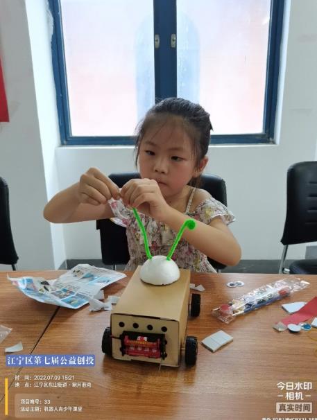 接下來,老師給大家?guī)砹藪叩貦C(jī)器人的diy。制作過程中,每位小朋友們都非常專注,努力讓自己手中的作品更精致,看起來更完美。課程在機(jī)器人清掃大pk中達(dá)到了高潮!兩支隊(duì)伍列隊(duì)前進(jìn),你追我趕,在短短兩三分鐘時間把地上的紙屑清掃而空。最后,所有小朋友都得到老師的糖果獎勵,酷熱的假日里孩子們不僅學(xué)到了新知識還收獲了滿滿的快樂!