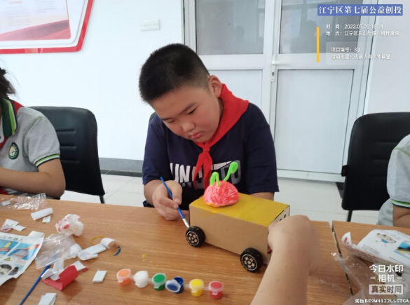 接下來老師給大家?guī)砹薉IY掃地機器人。制作過程中,每位小朋友們都非常專注,努力讓自己手中的作品更精致,看起來更完美,孩子們個個都像小發(fā)明家,認真細致的模樣讓人不忍打斷。