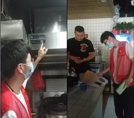 蛇盤社區(qū)工作人員通過檢查餐飲店油煙清洗臺賬記錄本,耐心講解做好油煙排放的必要性以及相關(guān)規(guī)范措施,告知店家夏季高溫炎熱,可以適當(dāng)?shù)卦黾觾艋髑逑吹念l次,定期檢修,盡量避免由于高溫而引發(fā)的電路板故障等問題。同時,蛇盤社區(qū)環(huán)保志愿者也會分別在中午和晚上餐飲店最繁忙的時間來到餐廳后廚,檢查凈化器排煙口的排放情況,如若出現(xiàn)油煙排放不達標(biāo)的狀況,便立即督促他們進行清洗、檢修。