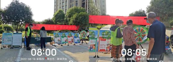 為進(jìn)一步貫徹落實(shí)《南京市生活垃圾管理?xiàng)l例》,培養(yǎng)居民生活垃圾定時(shí)定點(diǎn)分類投放習(xí)慣,同時(shí)聽(tīng)取居民對(duì)垃圾分類的建議和意見(jiàn)。 8月18日上午,江寧街道垃圾分類辦公室聯(lián)合第三方南京中顥環(huán)境管理服務(wù)有限公司在碧湖天辰小區(qū)開(kāi)展垃圾分類志愿宣傳活動(dòng)。