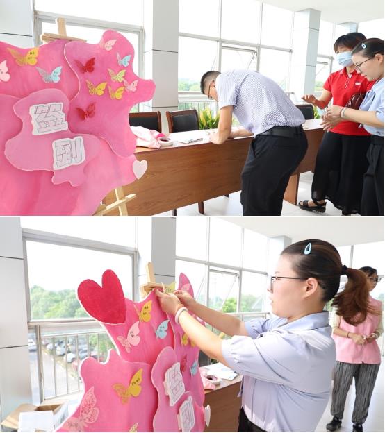 活動邀請到了橫溪街道婦聯(lián)專職副主席、團工委書記束珊珊,橫溪街道黨工委宣傳干事王愷,橫溪街道各村(社區(qū))婦聯(lián)主席,甘西社區(qū)黨總支書記、居委會主任魏世進和甘西社區(qū)居民參與,眾人在簽到處以“蝴蝶”點綴“巾幗之花”。