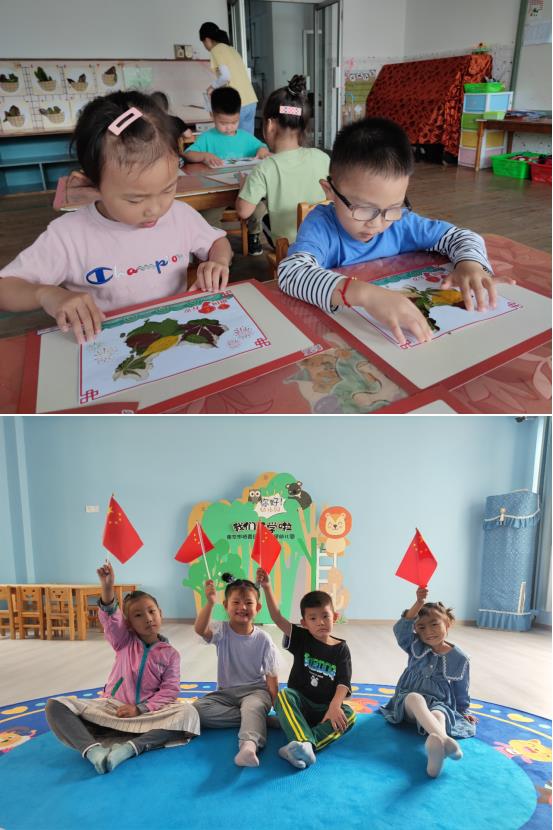 根據(jù)少兒的年齡特點,老師帶領孩子們開展了不同形式的愛國主題教育活動,包括裁剪天安門賀卡、制作中國樹葉地圖、繪畫彩色中國等。孩子們在老師的指導下,用自己的一雙巧手,將不同的樹葉粘貼在紙板上,組成中國地圖的形狀,又用彩筆繪出一幅幅圖畫……