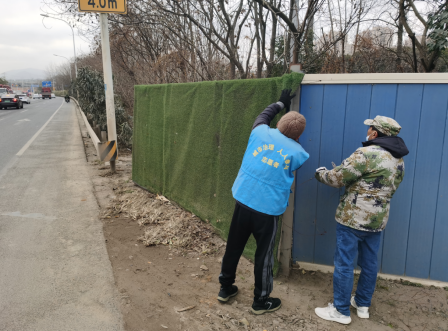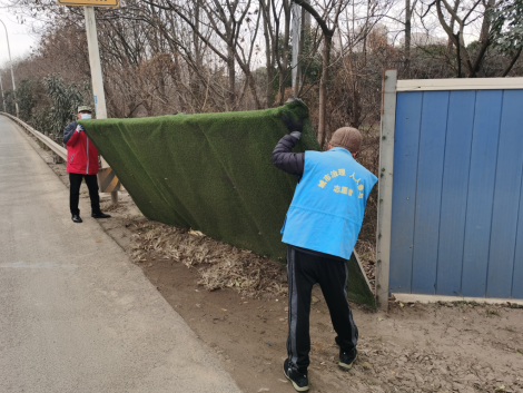 2023年1月18日,為了保障居民出行安全,防止破損的圍擋對(duì)路過的居民造成傷害,南京市棲霞區(qū)棲霞街道紅梅社區(qū)城市治理公眾委員組織城市治理志愿者對(duì)破損的圍擋進(jìn)行修復(fù),清理了圍擋邊的垃圾和落葉。