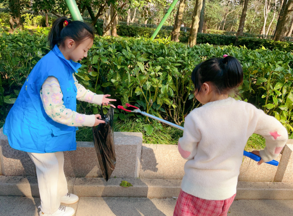 一路上,大學(xué)生志愿者負(fù)責(zé)道路前進(jìn)安全和輔助撐開垃圾袋,居民家庭兒童志愿者則負(fù)責(zé)用垃圾夾夾起垃圾放入袋中,他們的配合非常默契。志愿者們將目光緊鎖于地面,從路邊草叢,到垃圾桶堆放死角,不僅能夠發(fā)現(xiàn)枯木等大型垃圾,也不放過任何煙頭、紙巾等細(xì)小的垃圾。一轉(zhuǎn)眼,整個(gè)中山陵園就變得煥然一新了。