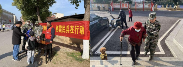 新合村、棲化新村民兵和退役軍人加入志愿者隊(duì)伍,向群眾發(fā)放消防安全、急救、防詐宣傳資料,引導(dǎo)、協(xié)助行動(dòng)不便的群眾,守護(hù)每一位老人。